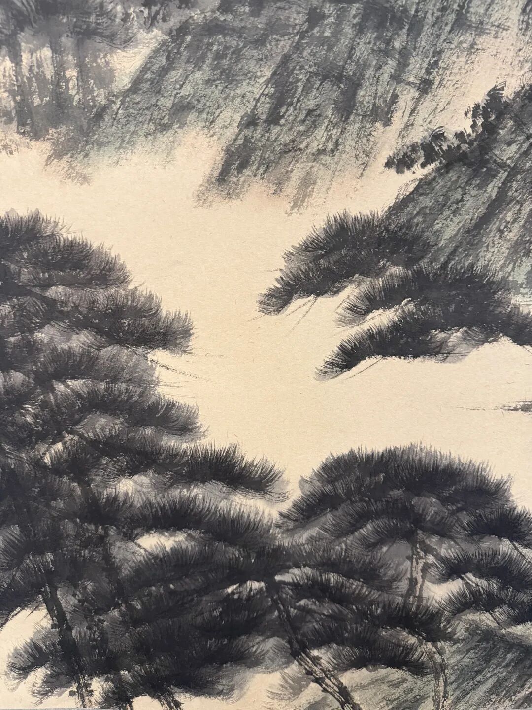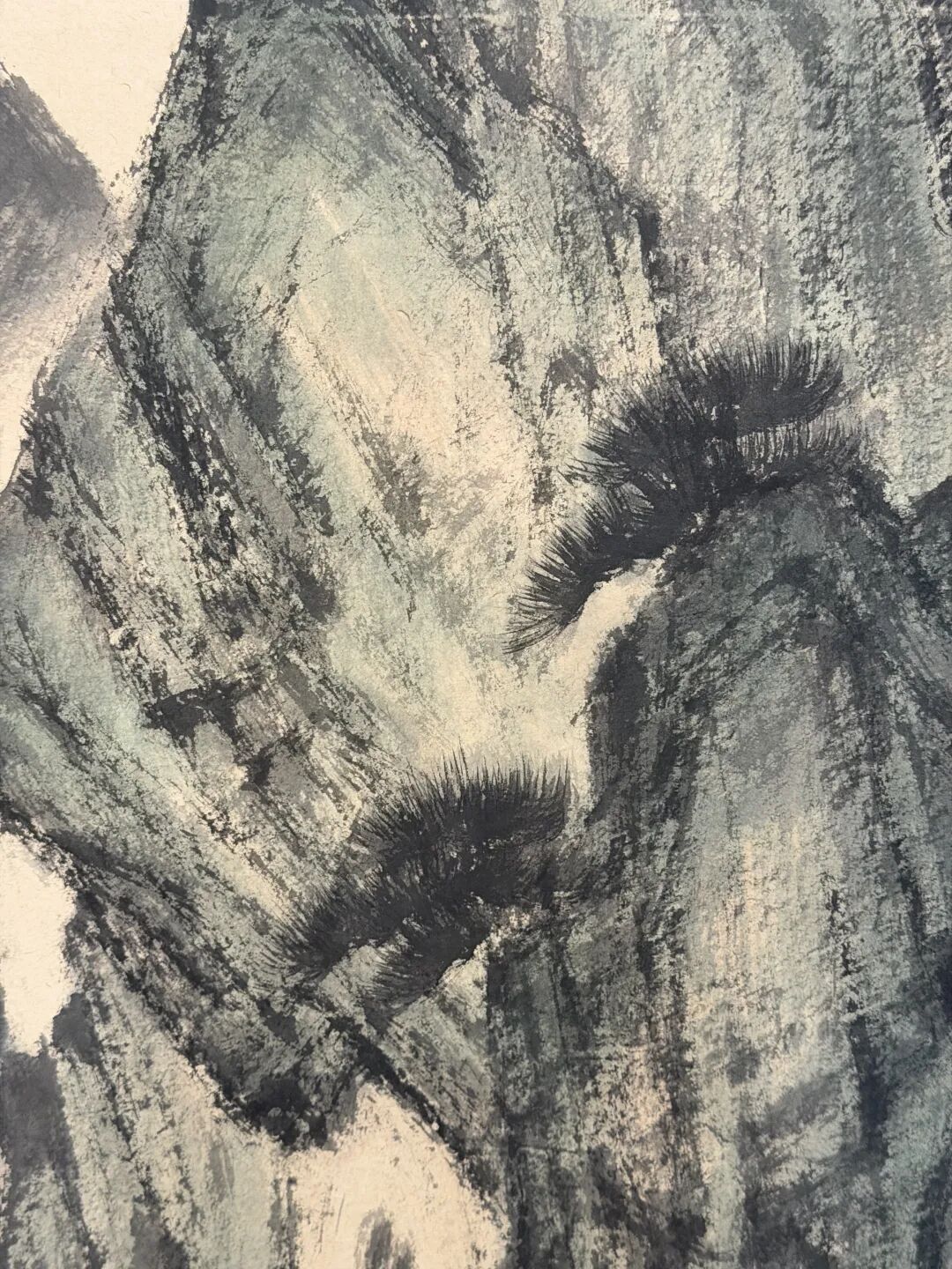 山石更绝,抱石皴一上,墨色浓得像黑云压城,淡处又像雾里看花。干湿墨一搅和,山像活了,有湿气,有干裂,摸不着却能感觉到。他爱用大块墨,泼得痛快,再拿细笔勾点景,比如高士、亭子,小得像蚂蚁,但神态全在,点睛之笔。